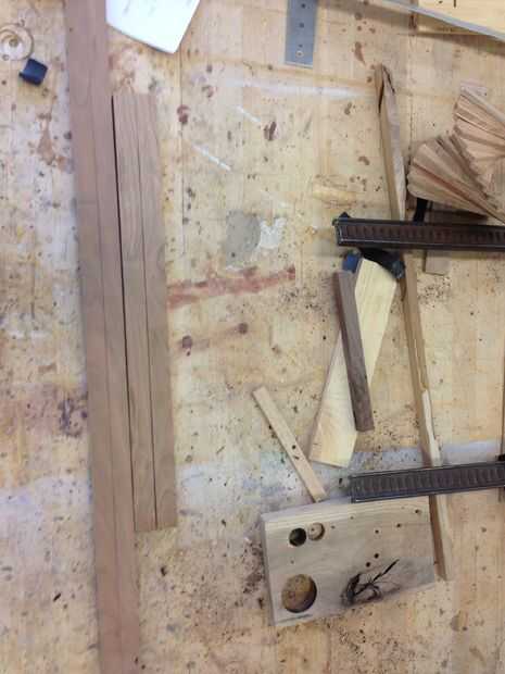 Cortar dos tablas de cereza a 37 pulgadas de 7/8 pulgada de ancho. Luego cortar dos tablas más de cereza en 15 pulgadas por 1 pulgada.
