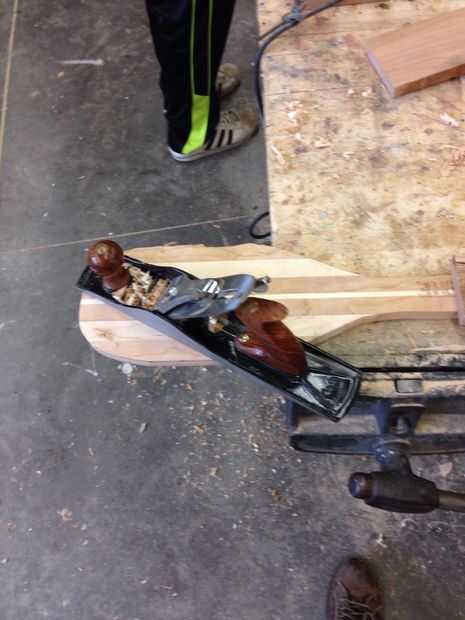 Usar el cepillo de mano para estrechar la hoja al espesor deseado.