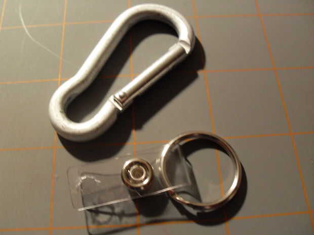 Mecanismo de llavero (no importa qué tipo usas, he utilizado un clip d y un clip de plástico de mi tarjeta de trabajo, fácilmente podría reciclar un viejo llavero en su lugar)