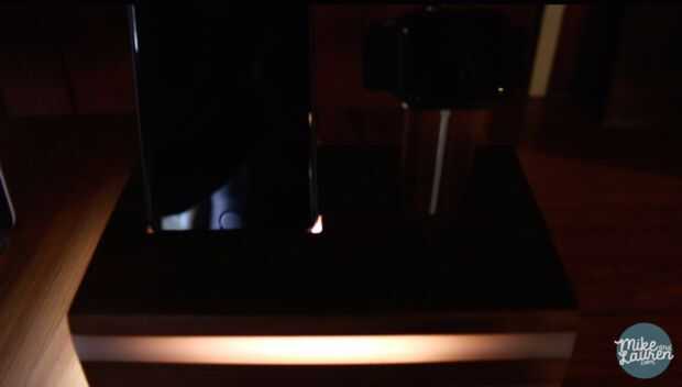 La semana que viene voy a instalar LEDs blancos en la base para que el plástico se ilumina cuando está conectado. Aquí fue una pequeña prueba que hicimos con una linterna.