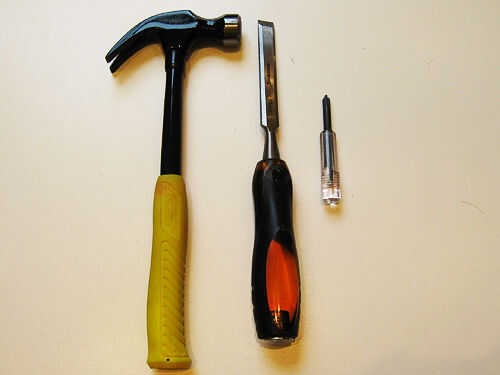 -Perforación o cincel y martillo para tallar un agujero en la madera