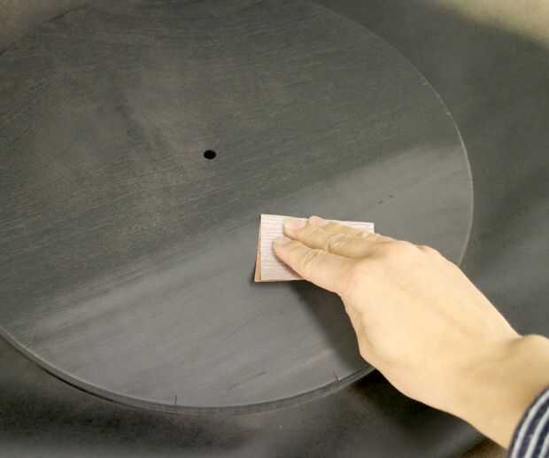 - Usando papel de lija grano 320, Lije ligeramente toda la superficie, incluyendo los bordes con pequeños movimientos circulares.