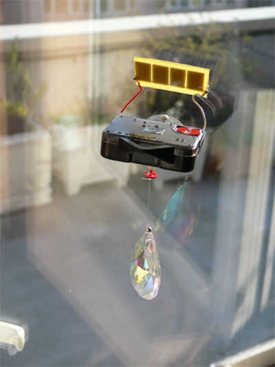 No puede ser más simple... encontrar un mecanismo de reloj. puede utilizar uno que sea defectuoso. Si gira el brazo de segundos, su bien para nosotros. encontrar un cristal, se puede utilizar uno de una vieja lámpara. encontrar una célula solar. la que he utilizado es de una lámpara de jardín. otros elementos necesarios: