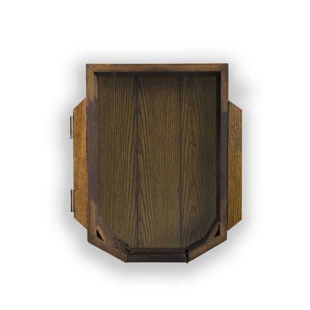 Fig.4 muestra la caja posterior. La esfera envolvente se fija por dos bisagras y un retén o pasadores de madera para la caja posterior. En el reloj original la caja habría ubicado el gran movimiento mecánico.