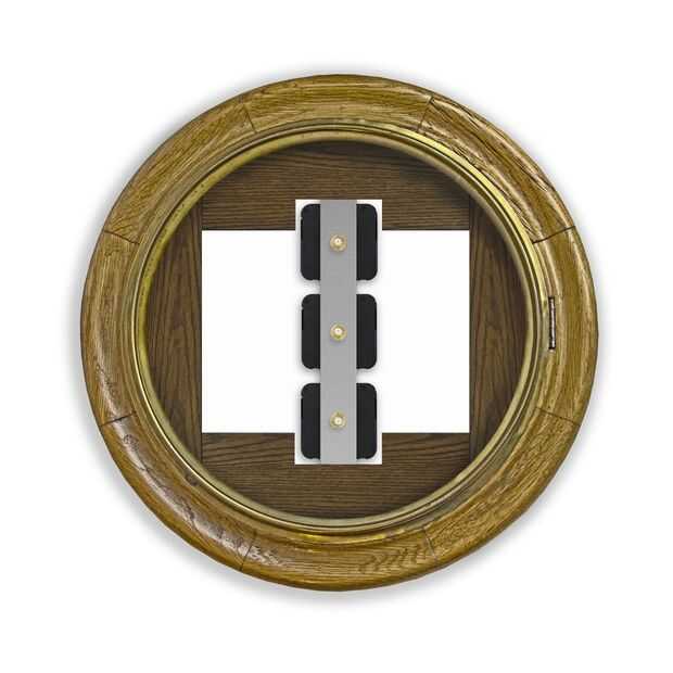 Fig.1 muestra el disco montado en el marco de madera (con bisel de latón con bisagras en su lugar). Nota la carátula del reloj aparece blanco y sería blanco del reloj real. El dial es atornillado en su lugar con 3 pequeños self tapping tornillos ocultados bajo el bisel de latón.