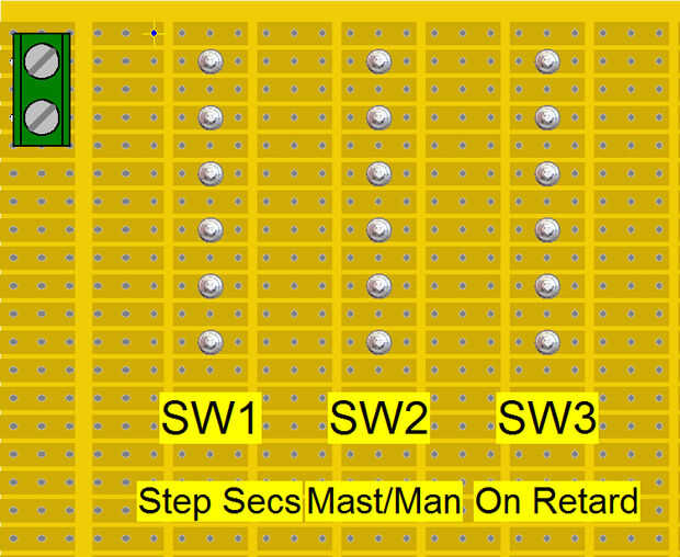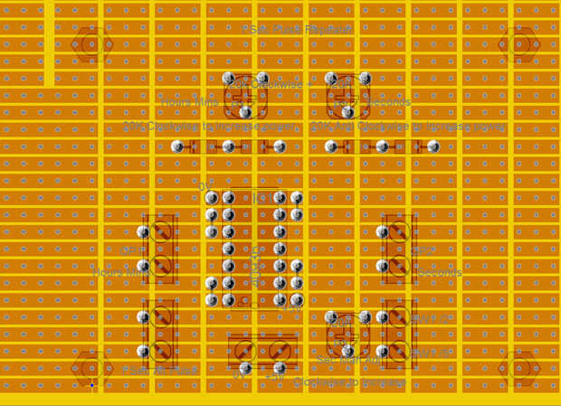 Mostrar los diseños de la veroboard de fig.1 e incluye un interruptor de tablero de conexión. Hay tantas combinaciones de cables o interruptores que éstos no aparecen en ningún gran detalle.