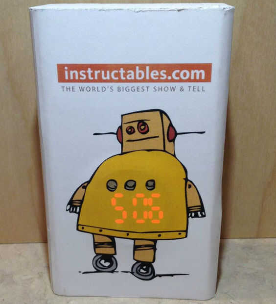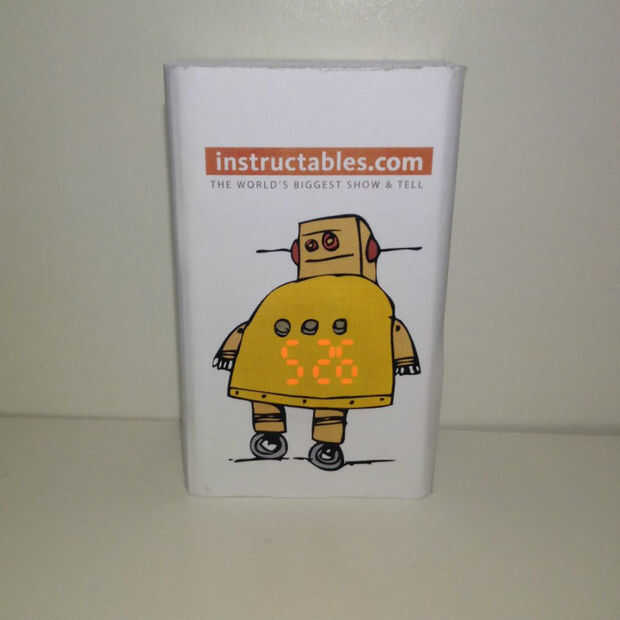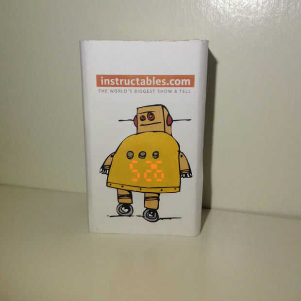 Este es un impresionante reloj de Robot de Instructables que es perfecto para cualquier escritorio, mesita de noche, alféizar de la ventana, mesa, etc... Es pequeño e inalámbrico, que lo hace ideal para viajes. Para activarlo simplemente empuje el robot y verlo iluminar y mostrar el tiempo. Con las herramientas adecuadas, este reloj es muy sencillo de crear. Se trata claramente de un deber-tener para cualquier miembro instructable. ¡Que te diviertas!