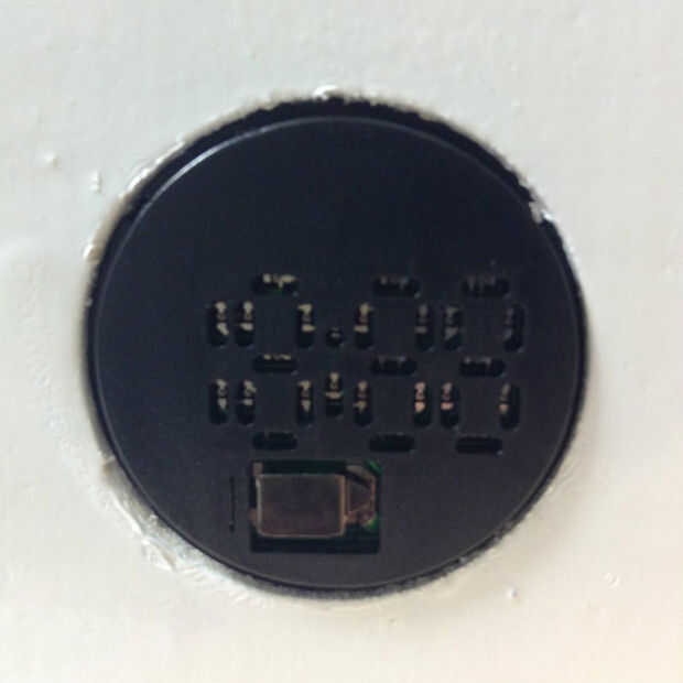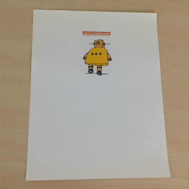 Cortar el área de la página que desee cubrir el reloj. Debe incluir el robot de instructables y logotipo y algún fondo extra blanco. Despegue el revestimiento de la etiqueta engomada y coloque la etiqueta directamente en el reloj, cubriendo completamente la cara del reloj. Asegúrese de que tenerlo coloca de modo que se enciende en el "vientre" del robot.
