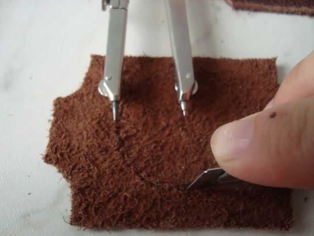 (Para un buen corte, utilice la cuchilla suavemente y ligeramente incline la hoja en su lado. Y cortar en una superficie dura). Vosotros mismos tren varias veces antes de cortar toda la pieza de cuero.