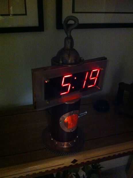 el reloj grande de steampunk con 2 pozos de luz RGB que fueron hechas por mi padre - el creador de la prop.Cuando usted está buscando en ellos tienes la sensación que se transportan en el mundo de Salvador Dalí.
