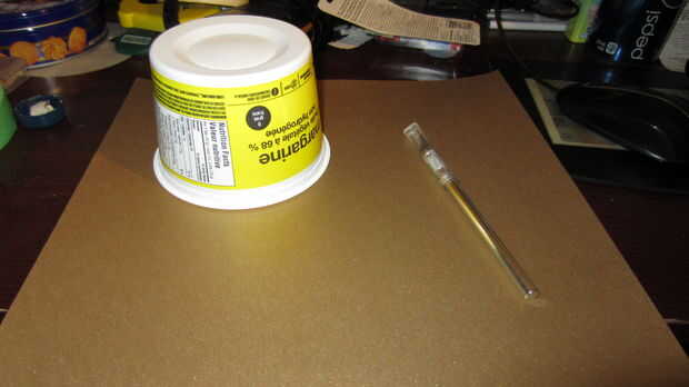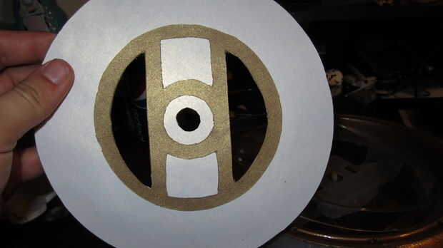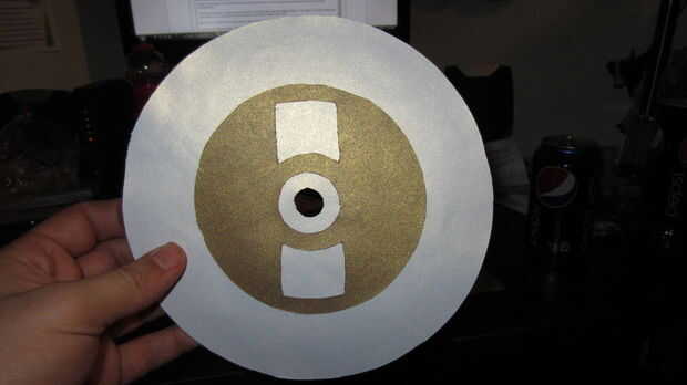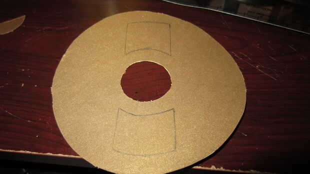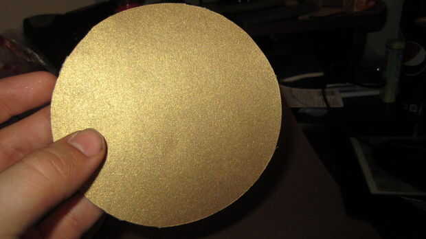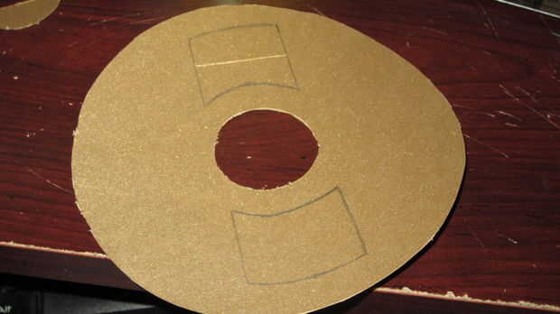 Usando su referencia, cortar un círculo de oro de su papel de oro. Mina fue de aproximadamente 11,5 cm. Limpiar todos los bordes con su bisturí. Esto es importante, como ese rostro se verá en el centro de su reloj.