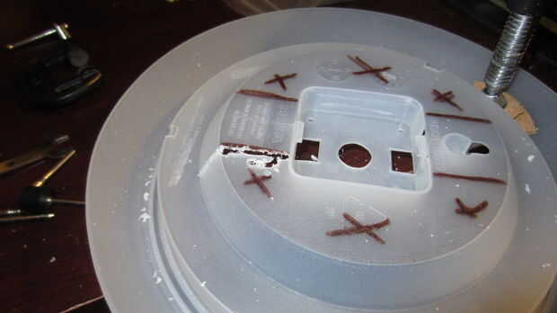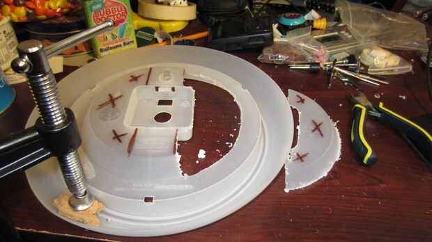 Con marcas... marcado, es el momento de hacer el corte real. Para ello, que utilizará una herramienta de corte de alta velocidad, como una dremel. Asegúrese de que su trabajo (el marco) está sujeta a una superficie sólida antes de hacer nada. También, gafas de seguridad! (no me digas que no!)
