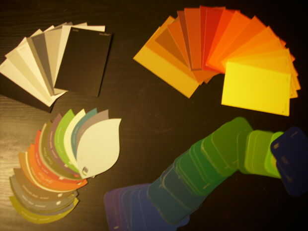Recogí uno de cada muestra de la pintura de cada una de las galerías de pintura que quería. Recogí los suministros para un reloj de escala de grises (para mi decoración de invierno), un reloj de color naranja rojizo vibrante (para la decoración de mi caída) y un reloj azul verde fresco (para la decoración de invierno y verano). También recogí una hoja estilo swatch (en realidad, muchos de ellos), para una galería de símbolos, similar a qué flecha flamming había hecho.
