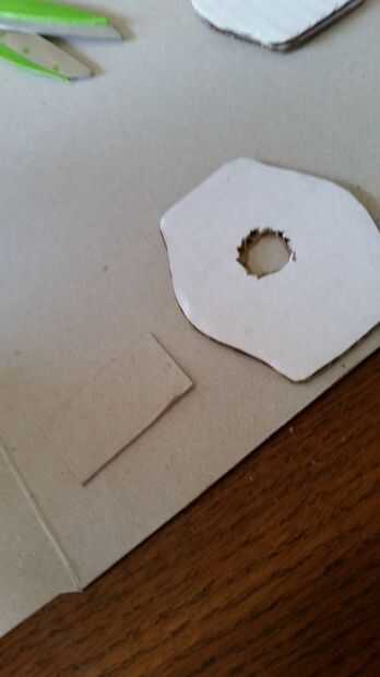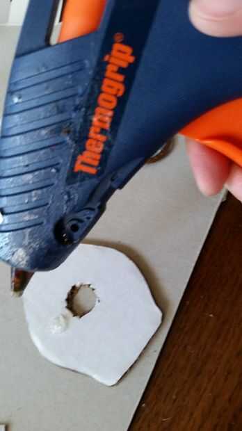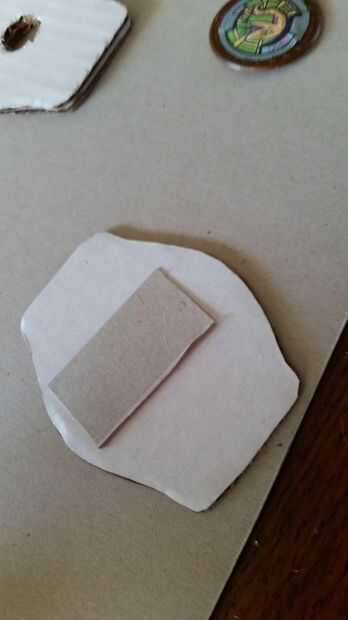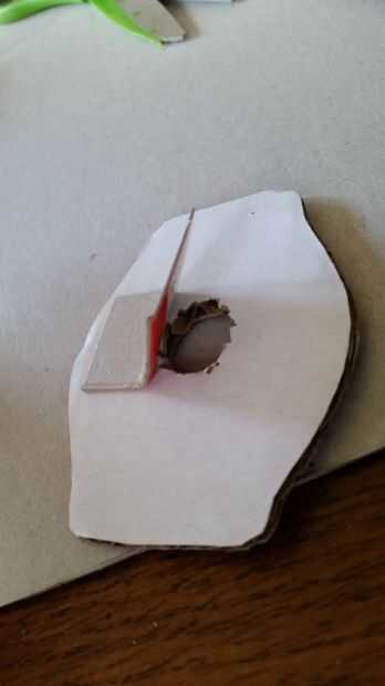 Tenemos que hacer una puerta para tapar el agujero de la batería. Cortar un rectángulo de cartón lo suficientemente grande para cubrir el agujero de la batería. Un lado con adhesivo caliente.