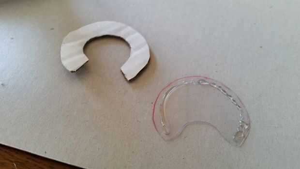 Si ya no has trazado el patrón en el plástico, hacerlo y recortarlo.