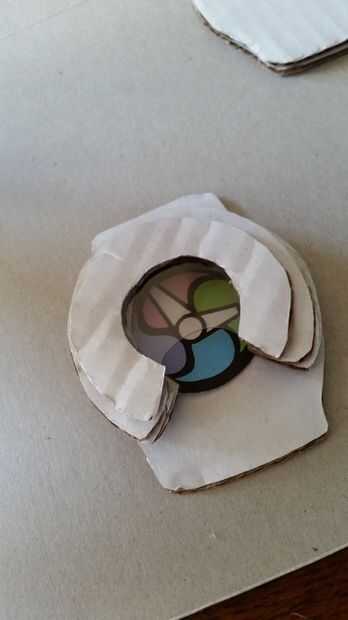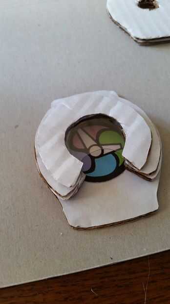 Para encontrar la ubicación de la esfera del reloj, en primer lugar Alinee los anillos sobre la pieza grande sin el agujero de la batería. Deslice la esfera del reloj en el lugar. Quitar los anillos. Pegar la cara del reloj.