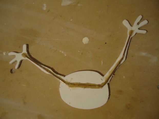 Luego construí una sección del puente para sostener la sección central del cuerpo frente a la tira que sostiene el cuerpo y la cabeza Junta, asegúrese de que el puente es lo suficientemente ancho para que cuando el péndulo está en sus extremidades, el puente no falta con la Faja de conexión de la sección central e inferior del cuerpo. Este puente y la parte media del cuerpo después fue unido al péndulo acortado.