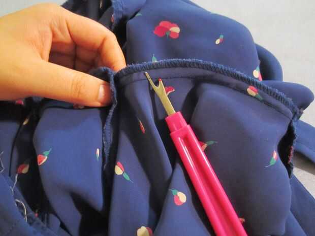 Puesto que la tela era tan puro y claro, pensé que sería perfecto para nuestros veranos de California a ir sin mangas. El destripador de la costura es la herramienta perfecta para estafando a las mangas. Honestamente, tijeras habría funcionado muy bien para ahorrar tiempo. Comencé con un descosedor y terminó dando el corte final con unas tijeras.