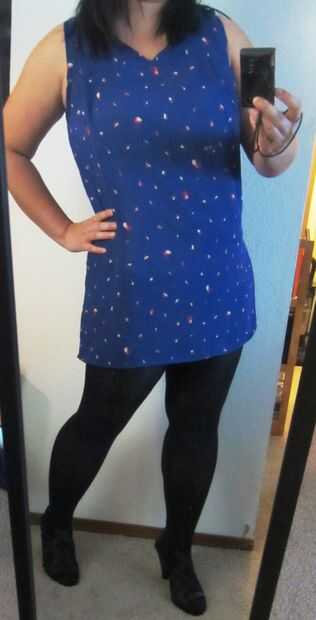 Lo que me encanta de este vestido es que es versátil. En las fotos puede verme jugando con un cinturón para cambiar. Mi maniquí es más pequeño que yo, así que no es tan buena de un modelo, pero por este tiempo terminé con los autorretratos en el espejo.