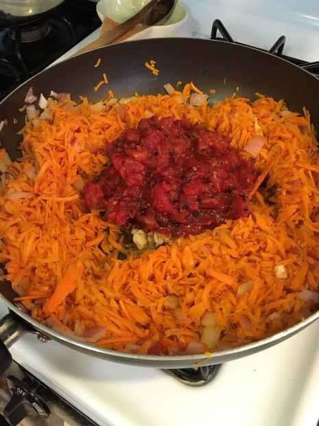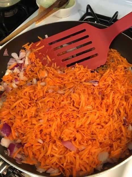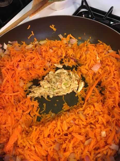 3. Agregue las zanahorias, mezclar y cocinar durante 2 minutos.