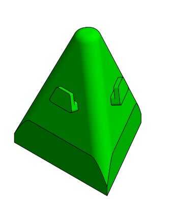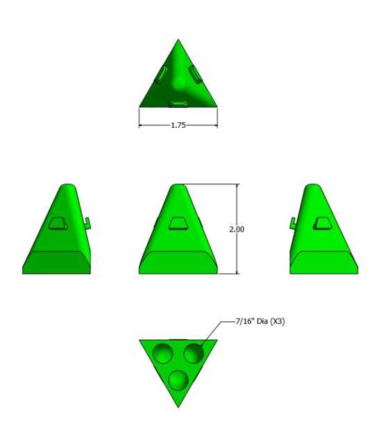 El diseño se basa en una pirámide triangular con los lados largos de 1.5" y 2" de altura.