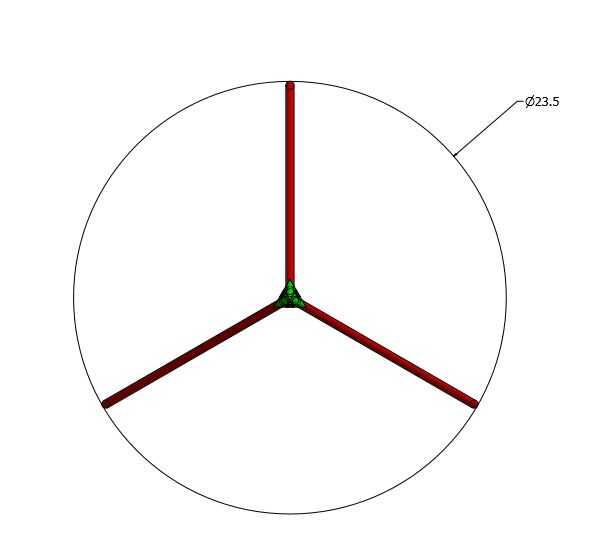 Los agujeros de diámetro de 7/16" en la parte inferior son en ángulo de 8 grados y son. 75" de profundidad. Para una 6' estaca larga, funciona hacia fuera en un anillo externo de 24,5"