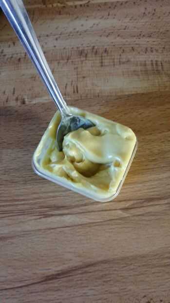 Cucharada de la mezcla en un recipiente que se cierre, debe ser aproximadamente la consistencia de mantequilla temperatura ambiente así que puede ser un poco desordenado pero no debería ser demasiado difícil de transferir.