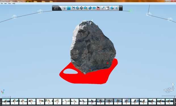 123D catch ha capturado la etapa de la plataforma de captura, así como el objeto de destino. Esto se puede eliminar con la herramienta de selección lazo a las áreas de contorno innecesarias, y pulsando Supr. Nota que siempre puede orbitar el objeto presionando Alt y arrastrando con el botón izquierdo del ratón.