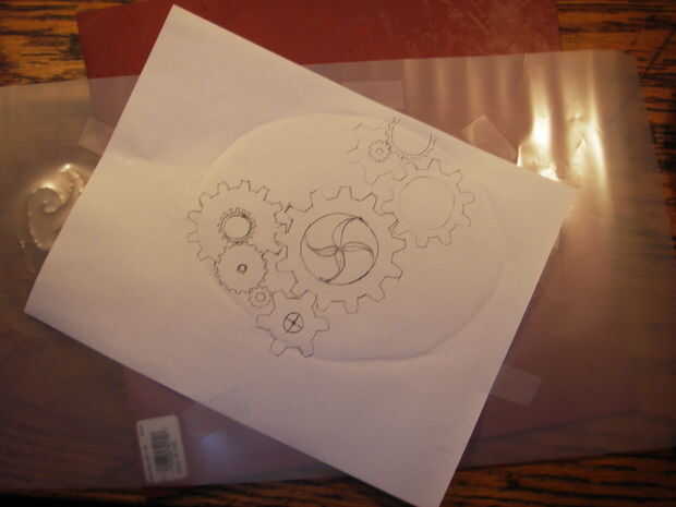 Dibujo lineal, bolígrafo, "transferencia de película" para cuero