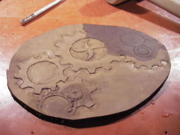 Remiendo de cuero mano-fileteado Steampunky (5 / 11 paso)