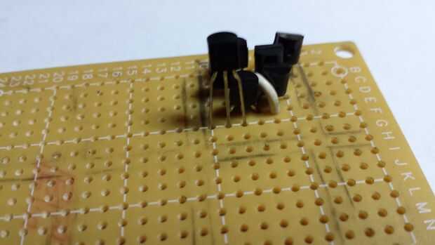 otro npn, columna f filas 8, 9, 10 hacia la derecha. 8f, 8 g, 9f a 9e, 10f, 10 g de la soldadura. Agregar también un cable puente de e6 a 8D. E6 a d6, d 8 a 8e de la soldadura.