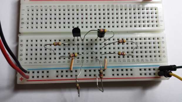 Ahora vamos a hacer el flip flop. Aquí es lo que parece en un protoboard. Como dije antes, si quieres mejores direcciones de la placa crearon entonces ir a ver a Teslalings instructable. El enlace está en la introducción.