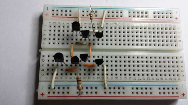 Aquí está el circuito comparador de gatillo en la protoboard. Si quieres una mejor demostración de cómo construir esta en la mira de placa en Teslaling instructable.
