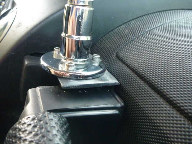 Dado que las estrellas y los planetas ya se alinearon, es simplemente una cuestión de fabricación de un soporte bastante resistente para servir como la interfaz de punto de montaje entre El escarabajo y Los brazos de ayuda (la foto de arriba muestra la cubierta lateral izquierda del Oh, Jesús Cristo Bar quitado).