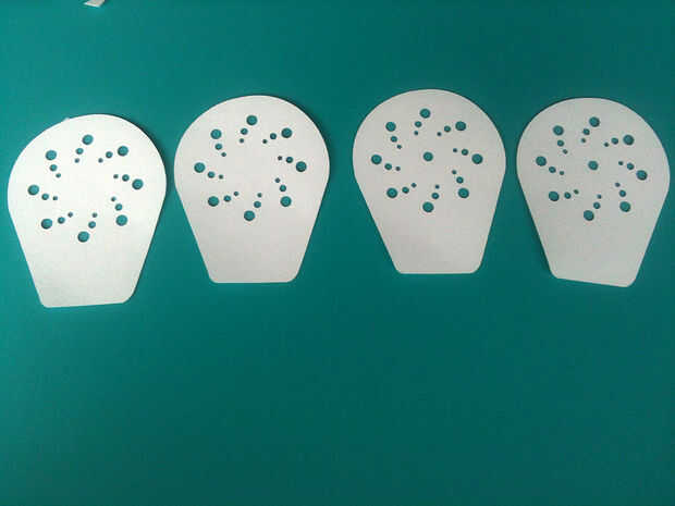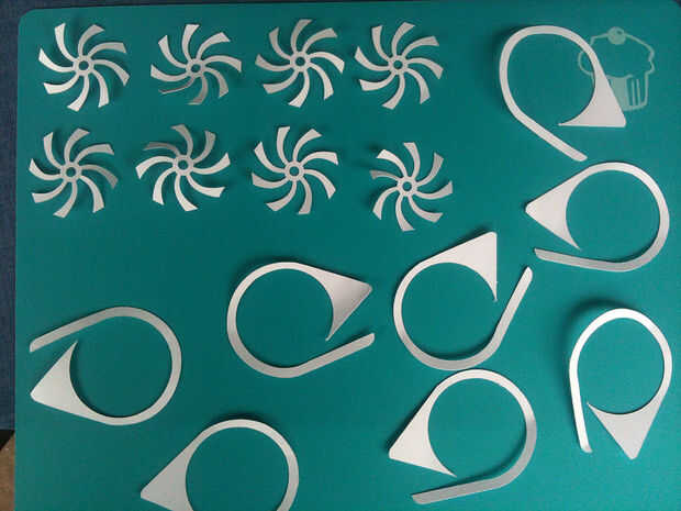 Hacer cuatro montones, uno para la placa inferior (las que con sólo un agujero). Uno para la placa superior con muchos agujeros. Uno con la turbina y con el recinto.
