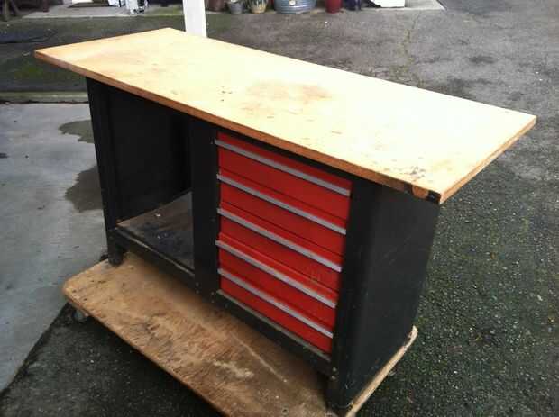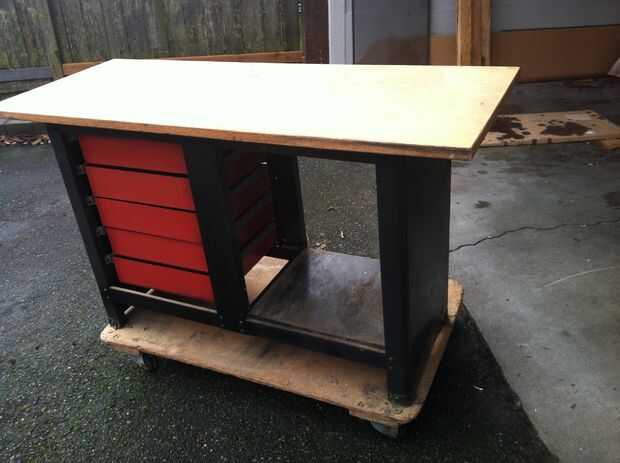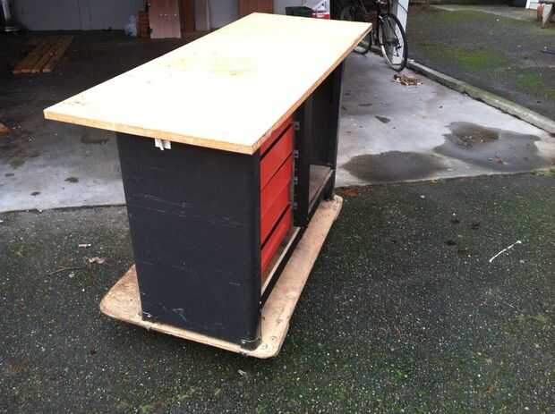 siempre tengo todas mis cosas en el piso. Así que decidí hacer un banco de trabajo. Pero porque yo no pude ponerlo en el garaje que pensé que me iba a movabable. Es un proyecto difícil. Tarda unos dos días para hacer. Y es algo grande y pesado así qu