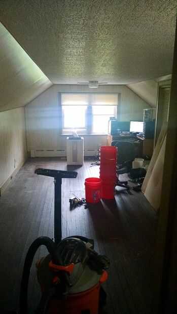Aquí considera que sería más fácil quitar el área de la pared de la rodilla donde planeaba instalar estantes incorporados nuevos. Era listón y yeso viejo y era un oso para quitar en un día. No usé, exagerar 10 + homer cubos y llena uno por uno hasta que todos fueron llenos que tomó en un viaje a la descarga. Sí, podría haber sólo llena un bote de basura o dos, pero los cubos más pequeños son mucho más fáciles de mover y manejar hacia arriba y hacia abajo de escaleras y de transporte en mi coche. Una basura de 50 galones puede podría haber pesó 150 libras cuando esté lleno de yeso y los desechos. No me estaba moviendo que solamente.
