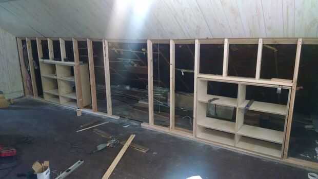 4. incorporado los estantes son una gran manera de retomar algunos de los que se pierden espacio detrás de la zona de la pared de la rodilla. Fue muy útil saber antes de tiempo las dimensiones de los estantes y tenerlos algo previamente construidas antes de enmarcar la pared. Pude hacer ajustes ajustados y solucionar problemas. Aún siendo este mi primer intento de les construcción iría sobre esto un poco diferente si iba a hacerlo de nuevo. Haber hecho el gabinete cajas de madera contrachapada de 3/4 debo han planeado un mejor marco de cara para ellos de madera maciza. En este intento me acaba fino pegado álamo para cubrir la veta de la madera contrachapada y ajuste moldeado alrededor de ellos. También no cuenta de cuánto tiempo tomaría el proceso de acabado. Todos la imprimación, lijado, pintura y lijado y repintado lijar otra vez y repintado y lijar una tercera y a tiempo para alcanzar la suave superficie lisa que esperaba. También no se muestra en los planos originales, he añadido un cajón debajo de cada sección del uno mismo, cambiar como hago el ajuste moldeado alrededor de las unidades.