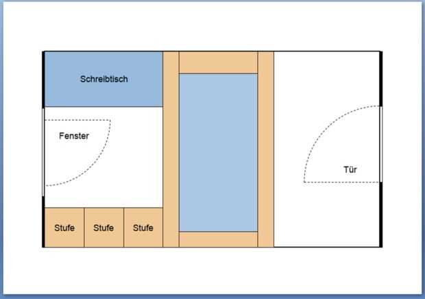 También tuvimos la idea de colocar el espacio en el escritorio justo debajo de la cama, pero esto habría llevado a un área de tenue eventualmente.