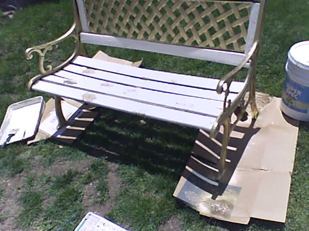 Un vecino de la nuestra tenía un viejo banco de Parque enmarcado de hierro sentado en una pila de basura en su patio trasero durante años y un día que dije que pensé que se vería bonito en mi patio. ¿Él se rió y dijo: "vean bien? está roto! Usted no