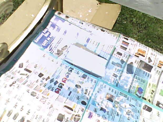 Para estarcir sobre la madera arrancó un cuadrado dentro de un pedazo de periódico del tamaño de mi diseño, se pueden utilizar tijeras por supuesto pero me daba pereza ir a buscar algunos, para evitar que la pintura que va donde no quiere. Pensé en un patrón que quería y empecé a estarcir lejos con la pintura en aerosol.