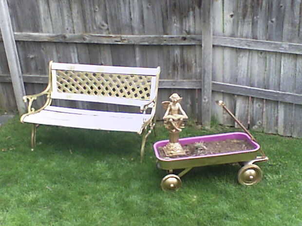 Un vecino de la nuestra tenía un viejo banco de Parque enmarcado de hierro sentado en una pila de basura en su patio trasero durante años y un día que dije que pensé que se vería bonito en mi patio. ¿Él se rió y dijo: "vean bien? está roto! Usted no