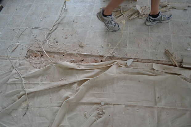 Si la pieza superior es en su lugar tiene un par de personas están debajo de él, apoyándolo, mientras se corta el extremo.