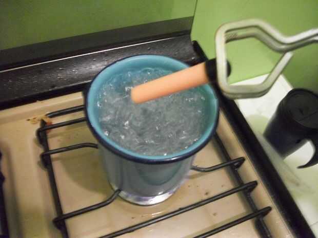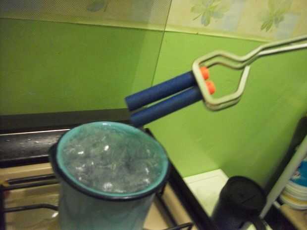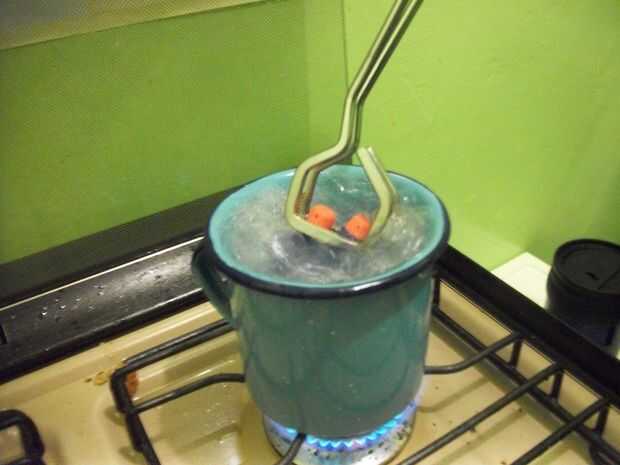 Tener cuidado acerca de cuánto tiempo usted sumerja el dardo. Si se calienta demasiado la espuma expanda más pero serán pinchar las burbujas de aire. Cuando se enfríe el dardo será muy delgada. Ver fotos de la dart naranja.