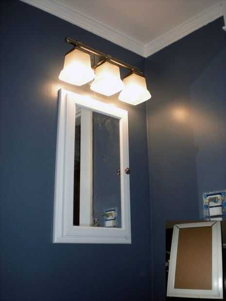 En este punto estaba un mes y mi mantenerse al día con las fotos tiene un poco menos minuciosa.  Recogí una separación botiquín que tenía un espejo destrozado y corte una pieza nueva para que desde uno de esos espejos de pared barato.  Junto con el puse en una barra ligera, otro gabinete montado en la pared, las barras de toalla típico y ese tipo de cosas.  Fui con una de las barras de ducha curvas que proporciona un poco de espacio extra.  El inodoro se volvió y reemplacé el cheapo hueco puerta con un antiguo 5 panel de la puerta que me la pelaron abajo.
