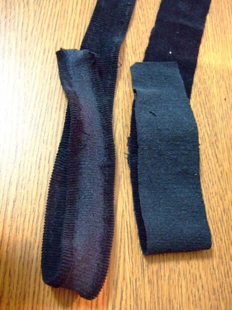 6. Parte superior coser las tiras en su lugar. Las pulgadas extras 3 es permitir que la parte inferior de la correa hacia abajo el tubo de Unión. Así pude ocultar puntos de sutura en el borde inferior del tubo de Unión.
