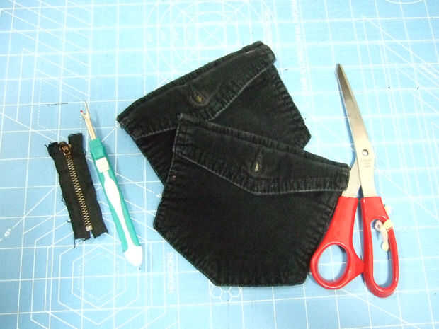 - Cortar la parte superior de los pantalones vaqueros que tiene el botón, esto puede ser un cinturón.