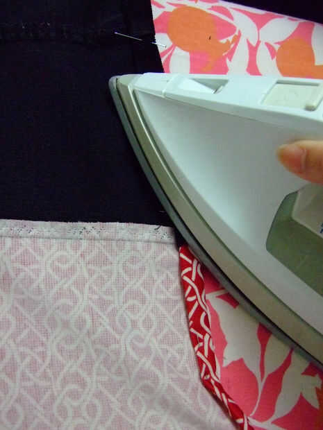 - Hierro, pin en lugar, a continuación, puntada zig-zag por el borde.