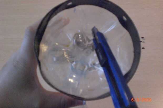 Lo hago ahora en la parte inferior por lo que si me deslizo mi cuchillo, será capturado en la botella, en lugar de deslizarse apagado y potencialmente causar daño.