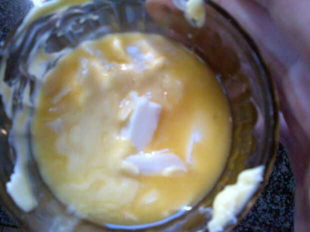 despedazar choc. poner en el tazón de fuente de microwaveble